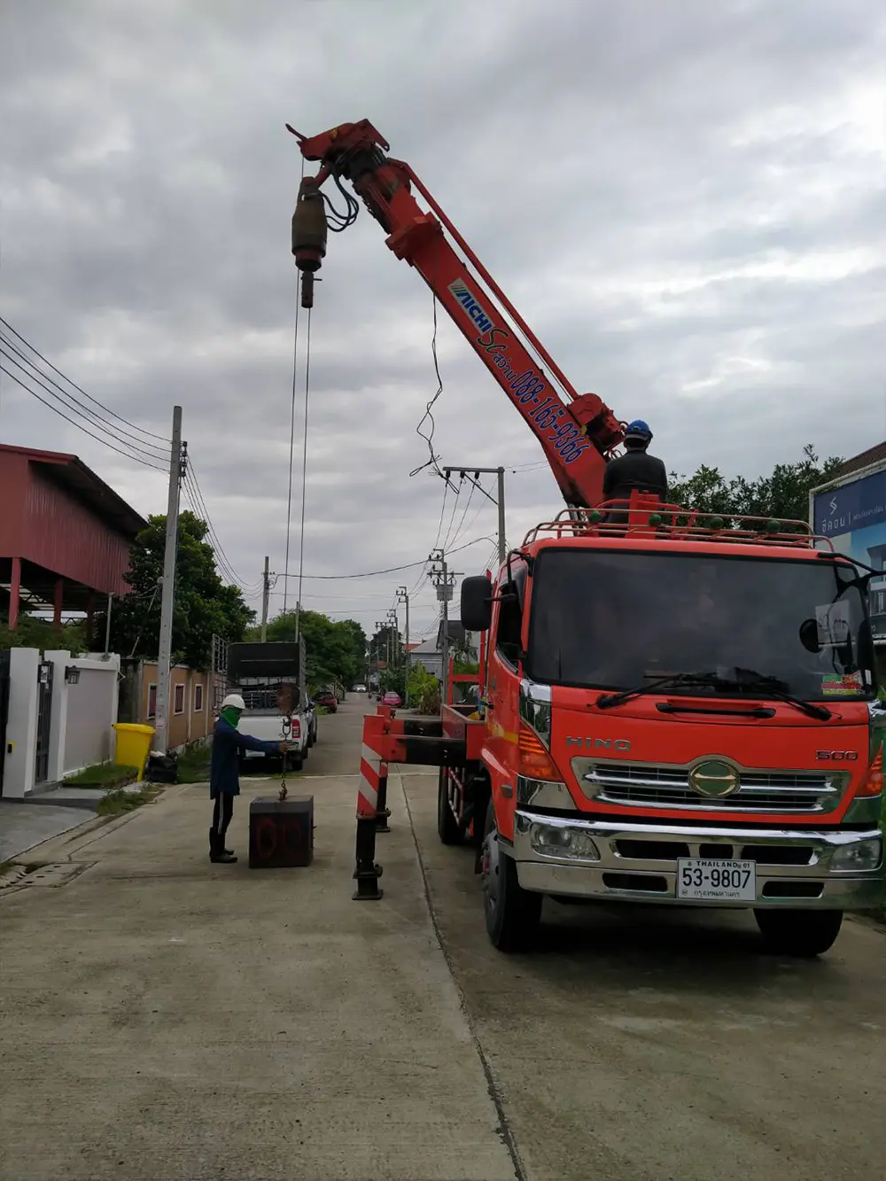 รับตอกปั้นจั่น โดยรถแท็ก ตีนตะขาบ เสากระโดง ปั้นจั่นสาน ขนาด I 18 I 22 I 26 I 30 I 35 I 40 และเข็มเหลี่ยม ทุกขนาด